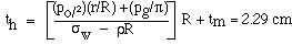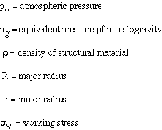 The thickness required to contain both atmospheric pressure and internal mass is determined by equation (2):