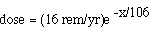 x = distance (g/cm^2) of shield traversed.