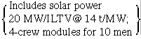 Inter-librational transfer vehicle | 10 | - | 11-25 | - | Crew for transfer between L2 and L5 |