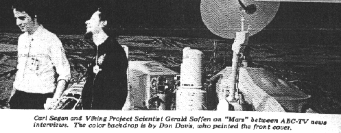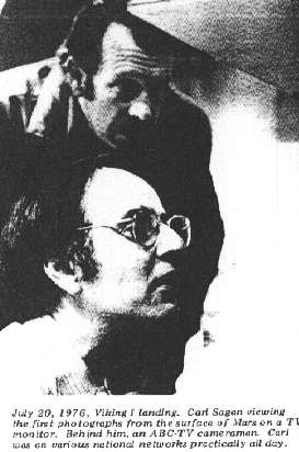 Sagan: Now that we're done with landing site certification I have a little more time to devote to scientific questions. I'm interested in the physics of wind-blown dust on Mars, the possible influence of ultraviolet light on the microbiology and organic chemistry results, sand ripples on Mars, and a number of other questions. You understand, the Viking mission is a team effort. The results we have were obtained by a large group of very competent scientists and engineers.