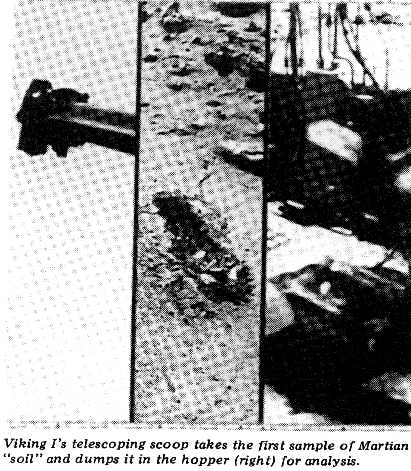 Margulis: I think it's 12 or 15 degrees Centigrade (50 to 60 degrees Fahrenheit). All temperatures around Viking so far have measured below 0 degrees C, below freezing, and this experiment is definitely above freezing. They had to run it at the same conditions as the spacecraft, because the machinery won't run at ambient temperatures. But it's not wetter than ambient. There's no liquid water at all in this experiment - only what vapor there would be anyway. Of all the experiments it's closest to Martian ambient. (one could argue in the other two experiments that you essentially drowned everything, because you've added more water than probably has been seen on that planet in a billion years.) On this one even the temperature's not that unreasonable, because in equatorial regions in Martian summer temperatures do get that high.