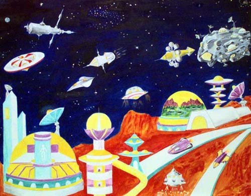 The Space Settlement Design Contest includes a division for artistic merit. Some of the submissions have been converted to jpegs and are available as thumbnails, quarter page and full screen images. There are 21 images of student artistic renderings below.