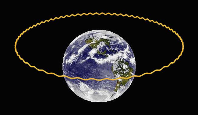 The gravity of the oblate Earth perturbs the loop. The perturbation results in a precession of the orbital plane, which means that the orbital plane rotates about the axis of Earth rotation. The period of precession is on the order of several months. [ref. 1]