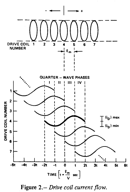 The program listed below is designed to calculate the reaction force on a drive coil due to all other active drive coils in its neighborhood as a function of the time from which that coil was turned on. It is written to be run on a Hewlett-Packard HP-67/HP-97 calculator.