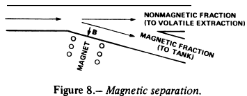 To extract most of the metallic phase, the gas stream and its entrained dust are passed through a magnetic field (fig. 8). An enriched fraction (80 percent NiFe)