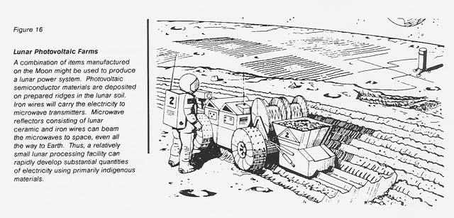 However, as figures 14-17 show, we can envision simple to quite complex construction projects on the lunar surface even in the early stages of lunar operation. And the growth of an industry to make lunar products for use off the Moon is a possibility, though a more distant one.