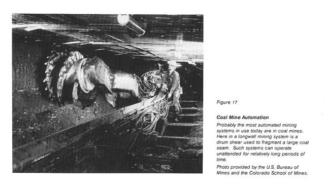 The mining system should be capable of automation to the level of sophistication of advanced automated systems at the time of implementation (see fig. 17). The system should also be flexible enough to incorporate the products of future robotics research. Full automation of routine mining operations should be incorporated within the prototype system.