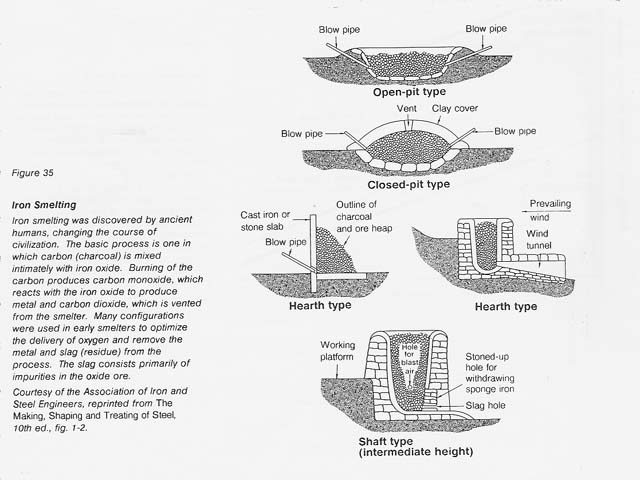 In pyrometallurgy the force that drives the chemical reduction of a metal oxide is high temperature. For many of the less stable metal oxides, carbon reduction at elevated temperatures is possible. This technology has been used successfully for iron smelting. (See figure 35.) For the more stable metal oxides, such as TiO2 and A1203, carbon reduction proceeds spontaneously (that is, the free energy becomes negative) only above 1630�C and 2000�C, respectively. The disadvantages of high temperature extraction include the large amount of energy required for heating, the difficulty in finding suitable container materials, and the problem of reoxidation of the molten metal.