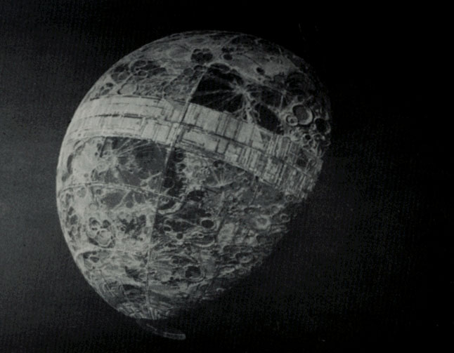 The National Commission on Space appointed by President Reagan calls for human outposts on the Moon (Artist David Meitzer's rendering of a Lunar Colony as Conceived in 1969) by 2005 and on Mars by 2115. The Commission believes that an aggressive plan should be adopted