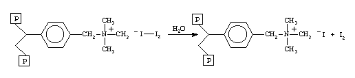 MCV resin consists of polyiodide anions bound to the quaternary amine fixed positive charges of a polystyrene-divinylbenzene copolymer anion exchange resin. The bound polyiodide anions release I2 to water.