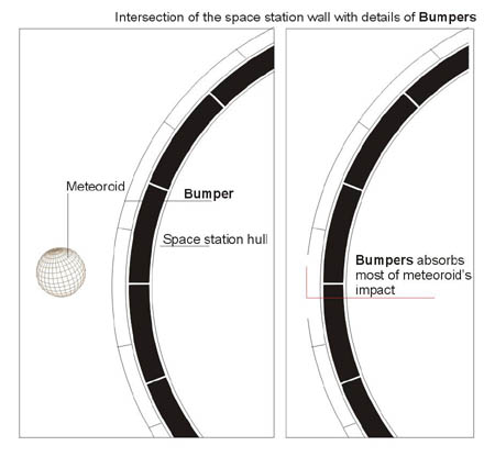 space station. Bumpers can provide protection. They will absorb most of the